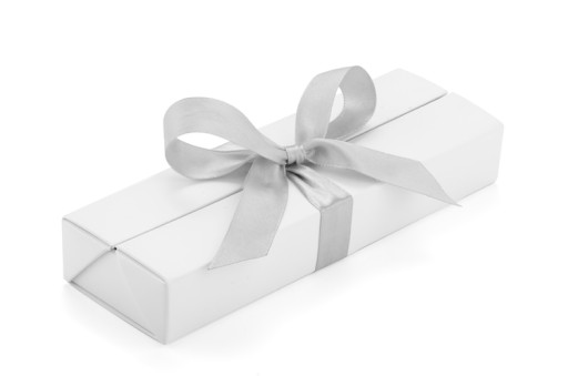 6️⃣ Białe opakowanie prezentowe z wstążką
