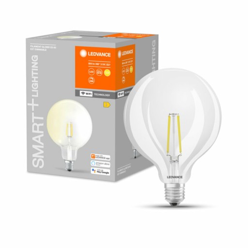 Ta żarówka filamentowa LED z trzonkiem E27 jako Globe G125 może być przełączana i ściemniana w inteligentny sposób bez dodatkowych pomocy. Można to zrobić za pomocą aplikacji na smartfonie/tablecie lub za pomocą polecenia głosowego.