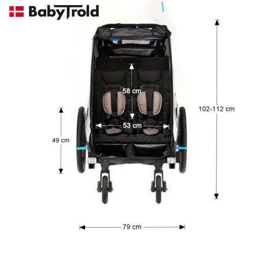 ✔️Dwa wygodne miejsca - w przyczepce może podróżować dwójka dzieci. Szerokość wózka pozwala na swobodną długą podróż