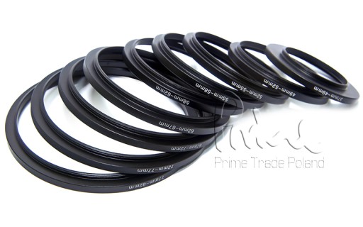 Przedmiotem sprzedaży jest zestaw 9 pierścieni redukcyjnych, tzw. Redukcji filtrowych, które są wykorzystywane do zmiany średnicy filtra obiektywu.