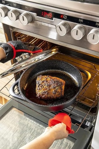- ✅Komfort użytkowania zapewniają szklane pokrywy ze stalowymi uchwytami i otworami do odprowadzania pary. Dodatkowo w komplecie znajdziesz praktyczne, silikonowe rękawice, ułatwiające prace kuchenne.