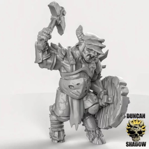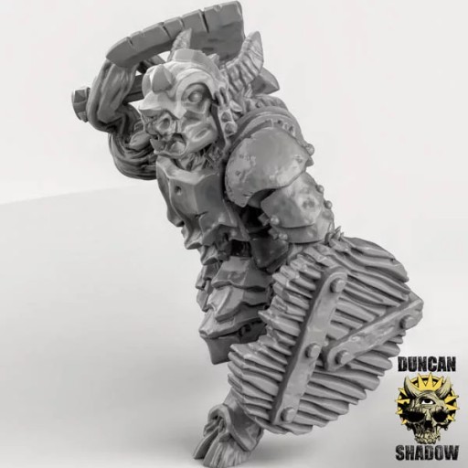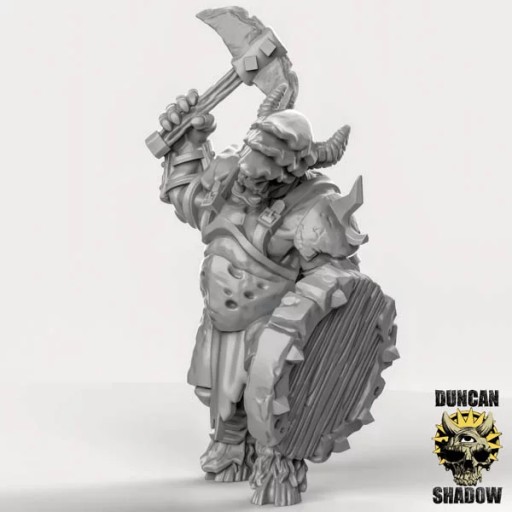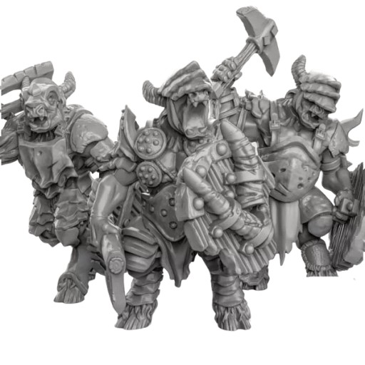 Oferujemy zestaw dziesięciu figurek Armoured Beastmen with Hand Weapons and Shields autorstwa Duncan Shadow, wydrukowany na drukarce żywicznej.