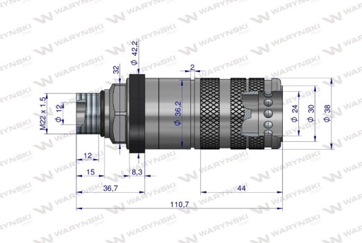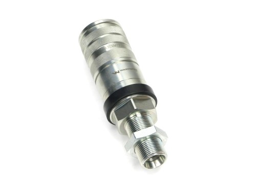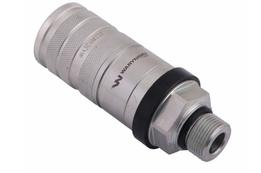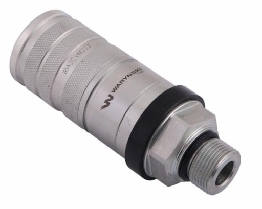 Szybkozłącze hydrauliczne zrywalne seria WIA3CV (3CFPV) gniazdo M22x1.5 gwint zewnętrzny EURO PUSH-PULL (ISO 7241-A) Waryński. Najpopularniejsze szybkozłącza hydrauliczne o bardzo szerokim spektrum zastosowań w najnowszych ciągnikach rolniczych. Ten rodzaj wykonania gniazda szybkozłącza zabezpiecza przed pęknięciem/zerwaniem przewodu hydraulicznego i utratą oleju hydraulicznego w przypadku jego niezamierzonego naciągnięcia - np. odjazd ciągnika bez odczepienia hydrauliki z podłączonej maszyny (montaż gniazda na sztywno bez dodatkowych uchwytów). Szybkozłącza zaprojektowane są zgodnie z wymogami wymiarowymi i jakościowymi normy ISO 7241 Seria A, która określa szczegółowo charakterystykę i wymiary. Zamienne z szybkozłączami innych renomowanych producentów takich jak: Parker, Faster, Stucchi, DNP i innych.