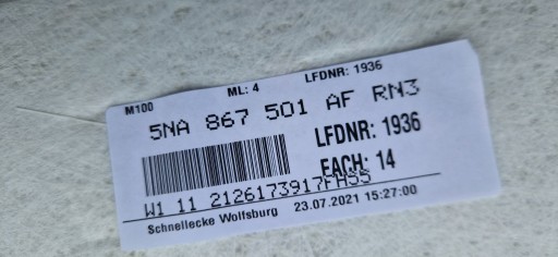 PODSUFITKA VW TIGUAN LIFT 2021- 5NA867501AF ORYGINAŁ IDEAŁ
