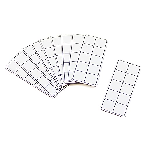 This set of magnetic ten frames is ideal for teaching numbers, addition, subtraction, counting, number bonds, doubling, halving and multiplication. Ten Frames are 2 x 5 rectangular frames in which you can place counters to illustrate numbers up to 10. By combining multiple ten frames, students can explore numbers beyond ten. Comes in a handy storage box with 10 ten frames and 100 colored counters.