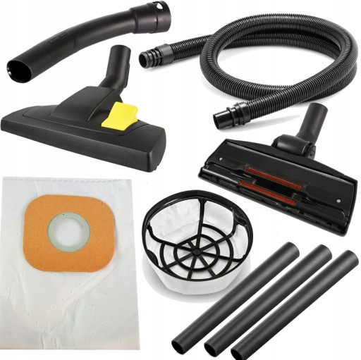 - Akcesoria w zestawie: Wąż ssący, 2 m3 x Rura ssąca, 0.35 mTorebka filtracyjna, FizelinaDysza podłogowa z lamelkami