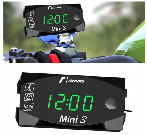 Motocykl Zegar Termometr Woltomierz Napięcia Wodoodporny 6V-30V Zielony