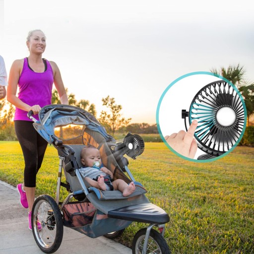 - Głowica wentylatora obraca się również o 360°, dzięki czemu nadaje się do sypialni, biurek, niemowląt, samochodów, fotelików samochodowych i podróży.