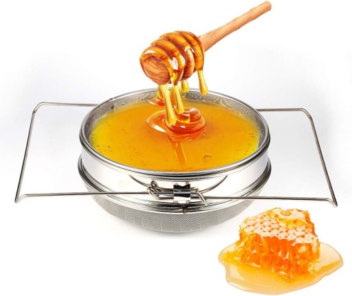 Dwuczęściowe sitko do miodu jest wyposażone w dwa oddzielne sita do wydajnej filtracji miodu.