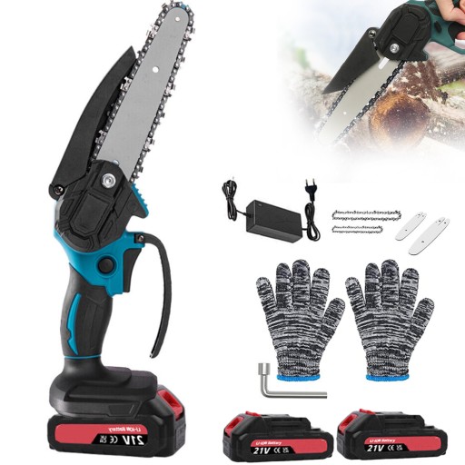 MINI ELEKTRYCZNA AKUMULATOROWA PIŁA ŁAŃCUCHOWA 4+6 CALI, 2 AKUMULATORY 1300 MAH 21 V
