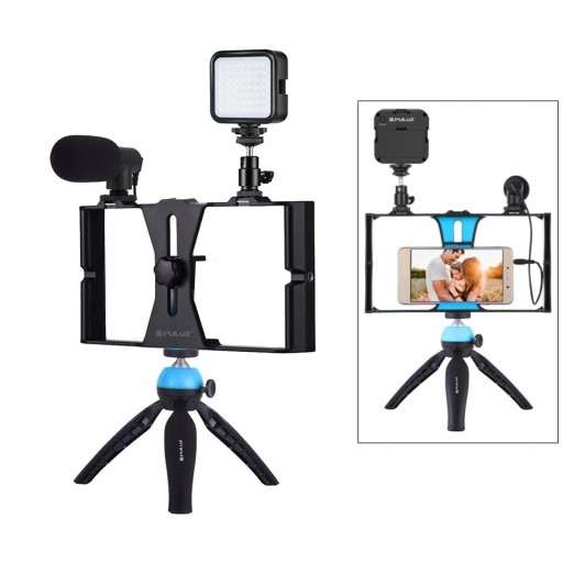 Telefon Video Rig Kit Lampa Pierścieniowa Do Selfie Mikrofon Stabilizator Filmowy Niebieski