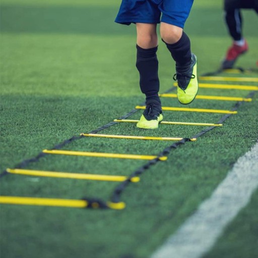 ⚽️Drabina i stożki zwinności mogą poprawić zdolność szybkiej pracy nóg. Ćwiczy elastyczność, równowagę i koordynację ciała. Agility Ladder to najpopularniejsze narzędzie treningowe mające na celu poprawę wyników sportowców, w tym zwinności, szybkości, eksplozywności, równowagi, pracy nóg i zdrowia układu krążenia.