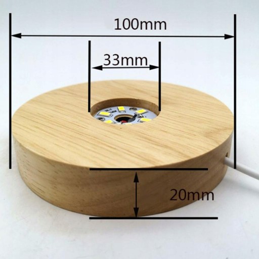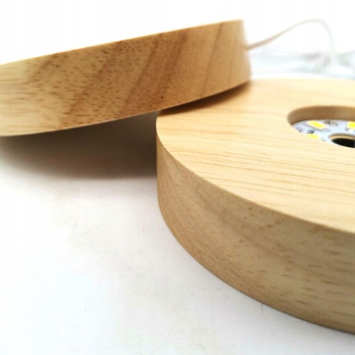 2 x Drewniana Okrągła Podstawa Podświetlana LED Lampa Stojak na Kryształowe Kulki Białe Światło