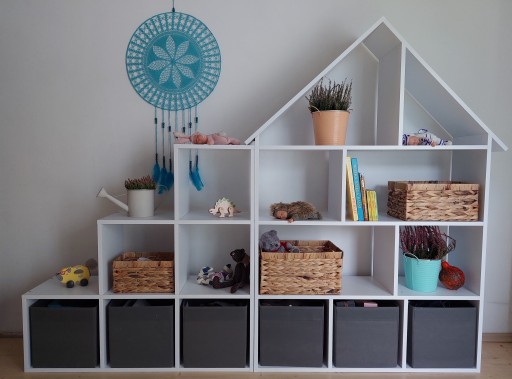 Regał domek można wykorzystać jako półkę na zabawki, książki, zdjęcia lub inne przedmioty, które dziecko będzie chciało wyeksponować.