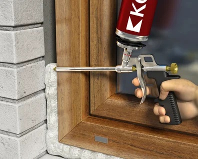 - Aplikacja piany poliuretanowej: montaż stolarki okiennej i drzwiowej, wypełnienia, uszczelniania, izolacje w budownictwie