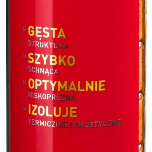 Niskoprężna, jednokomponentowa piana poliuretanowa w wersji z aplikatorem pistoletowym.