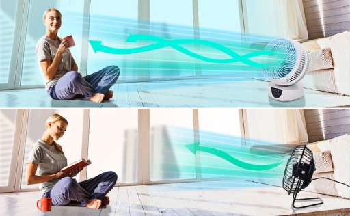 Dzięki funkcji oscylacji, wentylator stołowy zapewnia optymalną dystrybucję powietrza od lewej do prawej i z góry na dół. Automatyczna oscylacja wynosząca 80°lewa i prawa oraz ręczna 90°pionowa umożliwiają doskonałą cyrkulację powietrza i zrównoważenie temperatury w pomieszczeniu.