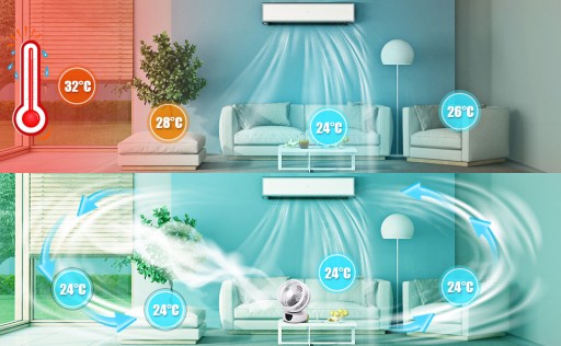 Twoje rozwiązanie na letnie upały! Dzięki zastosowaniu technologii turbo, ten wentylator obiegu powietrza stworzy konwekcyjny przepływ powietrza w ciszy, co zapewni równomierną temperaturę w pomieszczeniu. Można go używać wraz z klimatyzacją, oczyszczaczami powietrza i nawilżaczami, co pozwoli zmniejszyć czas chłodzenia i ogrzewania oraz poprawi efektywność oczyszczania, nawilżania i suszenia powietrza.