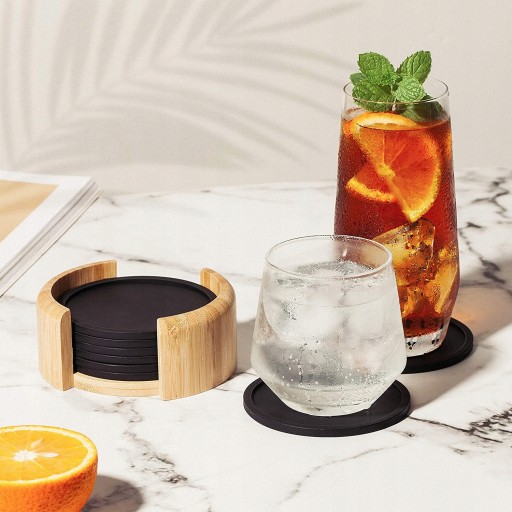 Eleganckie wzornictwo – czarne podkładki pasują do każdego stołu. Klasyczne wzornictwo wygląda świetnie i jest idealnym pomysłem na prezent. Odstawianie napojów odbywa się cicho.