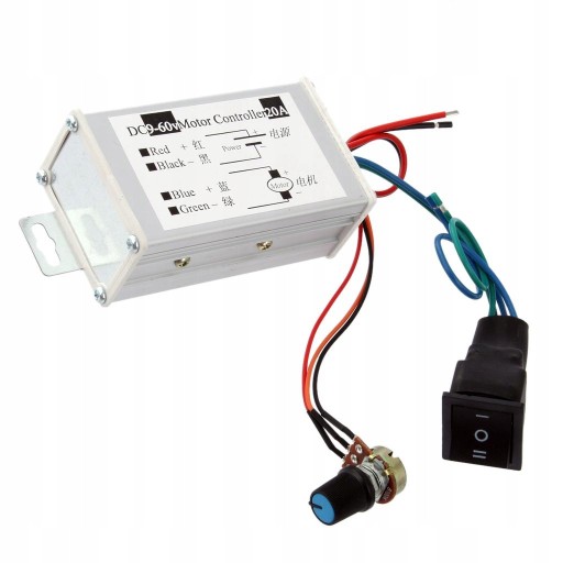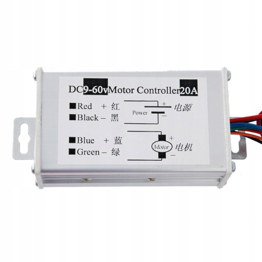 Opis: Napięcie wejściowe: 9 V-60 V Maksymalna moc wyjściowa: 400 W Maksymalny prąd: 16 A Prąd przeciążeniowy: 20 A Zakres modulacji szerokości impulsu PWM: 5% - 95%; W zestawie rezystancja regulacji 4,7 K W zestawie przełącznik cofania Rozmiar: 8,9 * 3,2 cm Zawiera funkcję łagodnego startu