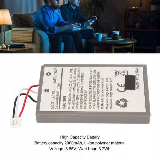 2. BATERIA O DUŻEJ POJEMNOŚCI: Ta ulepszona bateria wymienna LIP1708 ma pojemność 2000 mAh, jest wykonana z polimeru litowo-jonowego i napięcia: 3,65 V, WH: 3,7 Wh, co zapewnia kontrolerowi długą żywotność baterii.