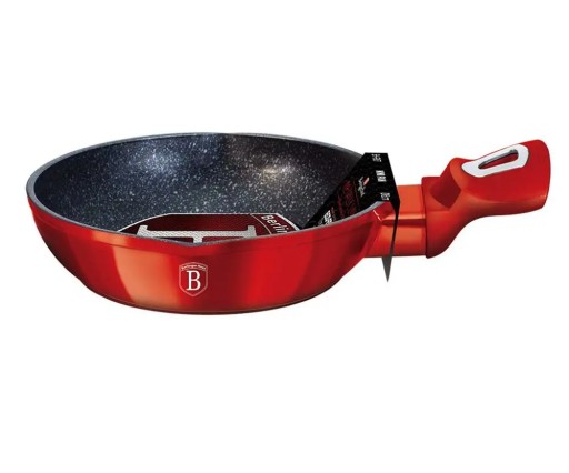 BERLINGER HAUS Mini patelnia o średnicy 16 cm Metalic Line Burgundy. Wykonana z kutego aluminium, pokryta powłoką nieprzywierającą, posiada wygodny, miękki i nienagrzewający się uchwyt oraz wylewki z dwóch stron. Idealna do przygotowania małej porcji sosu czy zasmażki. Nie zawiera PFOA, ołowiu i kadmu. Łatwa do utrzymania w czystości.