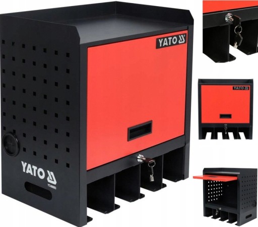 Zamykana szafka marki YATO, przeznaczona do przechowywania narzędzi warsztatowych.