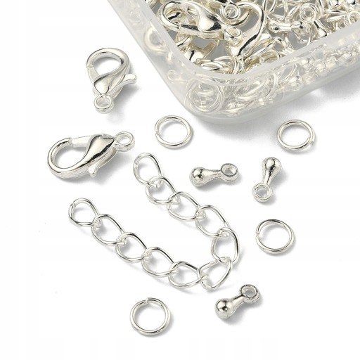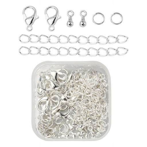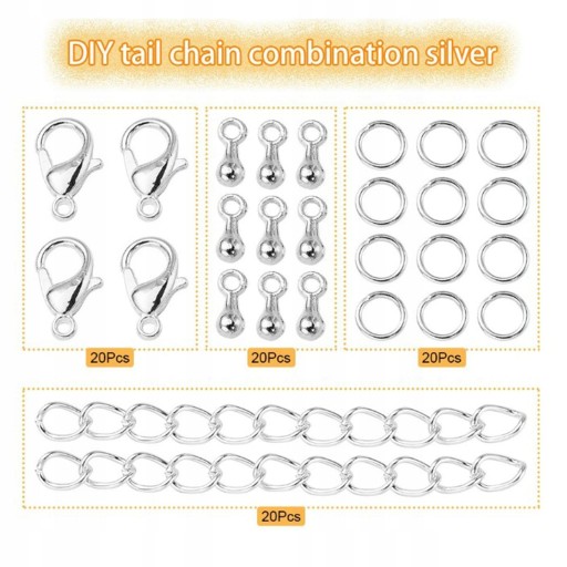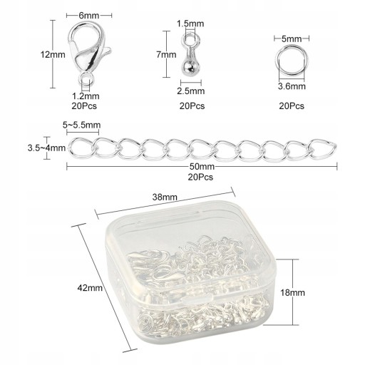 Opakowanie: do robienia biżuterii, w tym 20x otwarty pierścień do skoku, 20x zapięcie z pazurami , 20x łańcuszek przedłużający, 20x końcówki łańcuszka