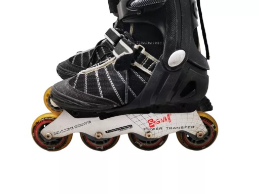 - Łyżworolki firmy SIGNA do jazdy szybkiej. Łyżworolki na miękkich, kauczukowych kółkach 82A 78 x 24 mm. Rolki posiadają wysokiej klasy łożyska ABEC 5 CARBON utwardzane, osadzone w aluminiowej płozie.