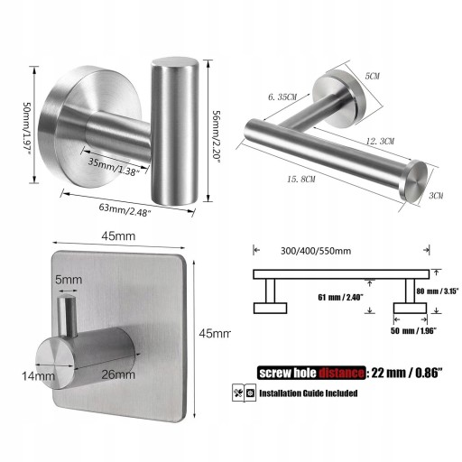 Zestaw ręczników łazienkowych wykonanych ze stali nierdzewnej 304, która zapobiega rdzewieniu i korozji w łazience, połączony długotrwałą konserwację, 5-częściowy zestaw sprzętu łazienkowego zapewnia dostęp i wyświetlanie ręczników, szlafrok i toaletę w łazience
