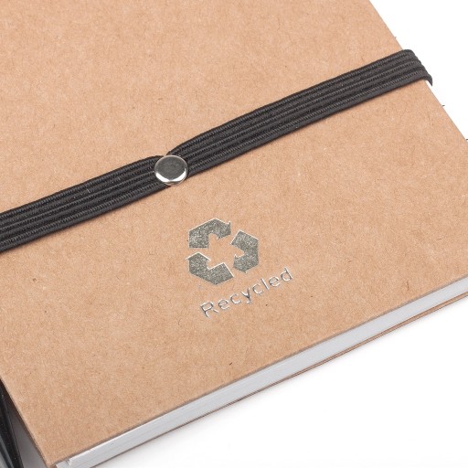 Idealny dla uczniów, studentów czy jako upominek wręczany podczas konferencji - zestaw notes z długopisem. Dodatkowym atutem obu elementów jest tworzywo, a jakiego zostały wykonane, mianowicie szary, ekologiczny karton. Ponadto kołonotatnik uzupełniony jest kolorowymi wykończeniami oraz gumką, podobnie jak długopis. Jest to ciekawa alternatywa dla szarych i monotonnych gadżetów reklamowych o ekologicznym charakterze.