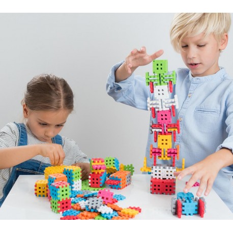 Dzieci mogą tworzyć nowe budowle o znacznie mniejszym formacie niż dotychczasowe klocki Waffle, dzięki temu nasze pociechy nie muszą się martwić o zagospodarowanie większej przestrzeni.