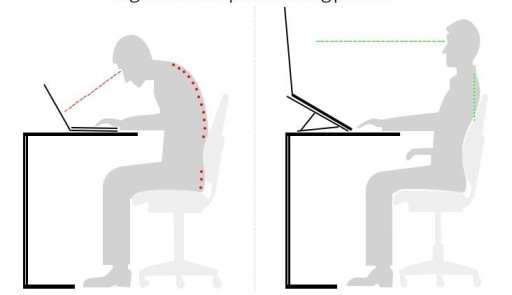 Dzięki podstawce zapobiegasz pochylaniu się nad ekranem, zmniejszasz ból rąk i kręgosłupa.