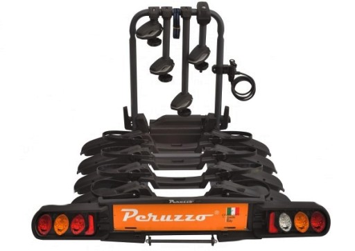 Składany bagażnik Peruzzo COMO 4 Pure Instinct do przewozu 4 rowerów na haku holowniczym. Posiada funkcję odchylania, łatwy system montażu oraz zamknięcie antykradzieżowe.