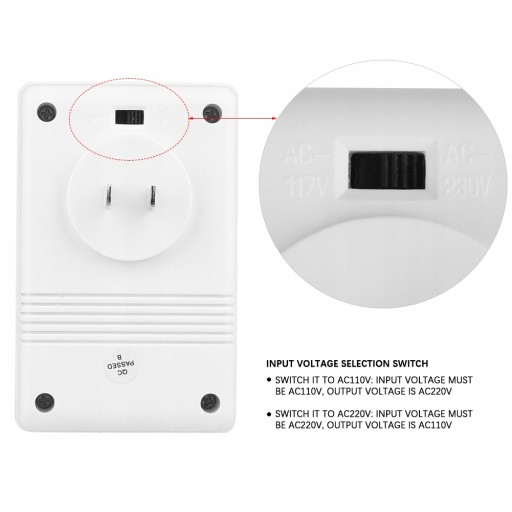 Przełącz na AC110V, napięcie wejściowe musi być AC110V, napięcie wyjściowe to AC220V
