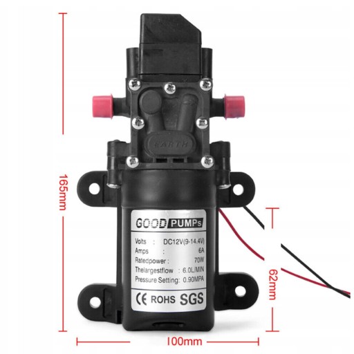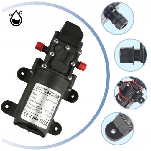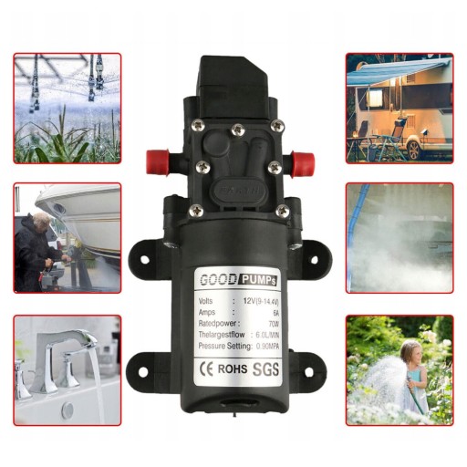 МЕМБРАННЫЙ ВОДЯНОЙ НАСОС 6Л/МИН 12В 70ВТ САМОВСАСЫВАЮЩИЙ ДЛЯ САДА