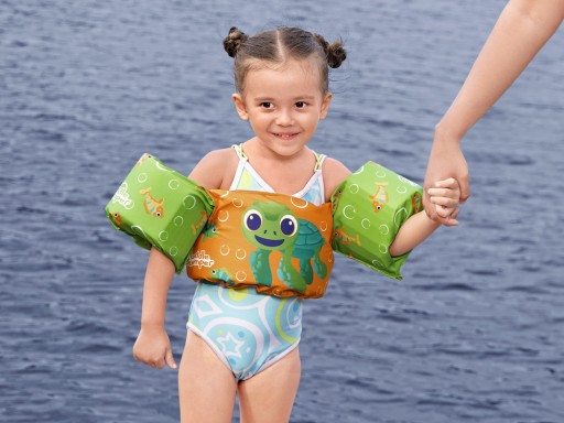 Gotowe na lato pełne uśmiechów i zabawy nad wodą? Poznaj kamizelkę do pływania z rękawkami Puddle Jumper® Dziecięca kamizelka kąpielowa Deluxe – Żółw!