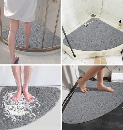 - Narożna mata prysznicowa ma wzór w kształcie łuku, mata prysznicowa o wymiarach 53 x 53 cm, która doskonale łączy się z narożną kabiną prysznicową.