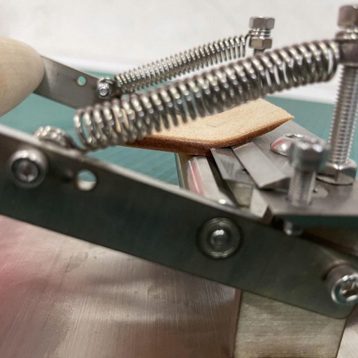 Ręczna maszyna do przerzedzania skóry, bardzo odpowiednia do rzemiosła skórzanego. Szerokość robocza: 100 (mm) (3,15 cala)