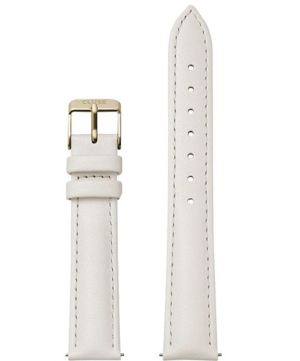 Cluse La Tétragone CS12216 to casualowy pasek, który został wykonany z gładkiej skóry w kolorze białym. Wyposażono go w zapięcie na sprzączkę w kolorze złotym oraz mocowanie quick-release. Jego szerokość wynosi 16 mm. Pasuje do modeli z kolekcji zegarków Cluse La Tétragone, Feroce Petite, La Roche Petite, Le Couronnement, Minuit, Pavane Petite.