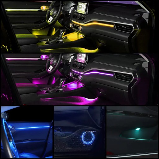 ŚWIATŁOWÓD AMBIENT LED RGB OŚWIETLENIE WNĘTRZA AUTA ZESTAW RGB APLIKACJA BLUETOOTH 6M