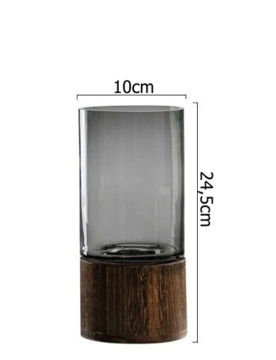 Деревянная прозрачная стеклянная ваза высокая для украшения орнамента цветов