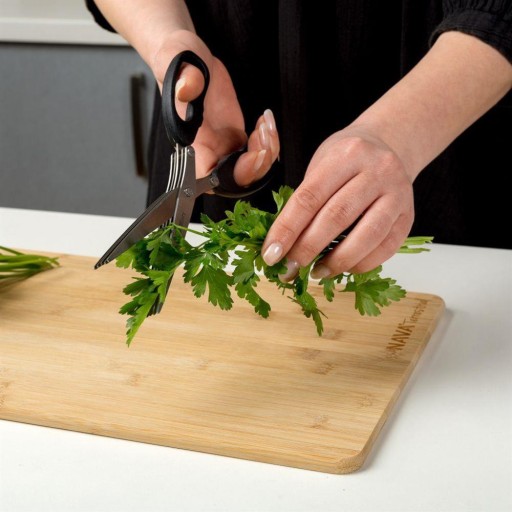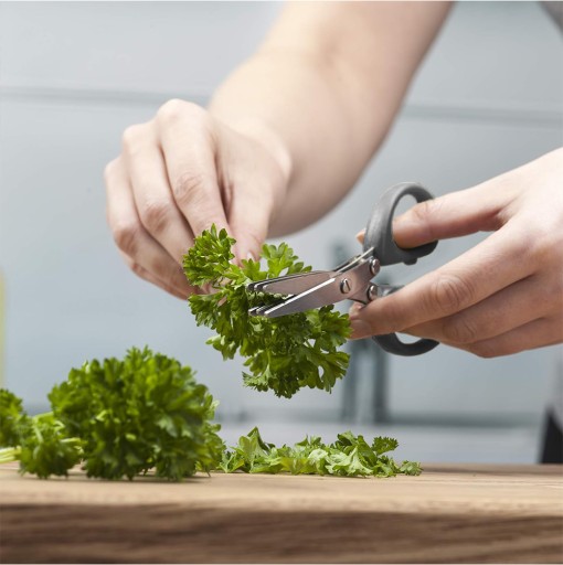Nożyczki z 3 ostrzami specjalnie zaprojektowane do cięcia ziół, takich jak pietruszka, szczypiorek, rzeżucha, liście sałaty, kolendra, szalotka i wiele innych.