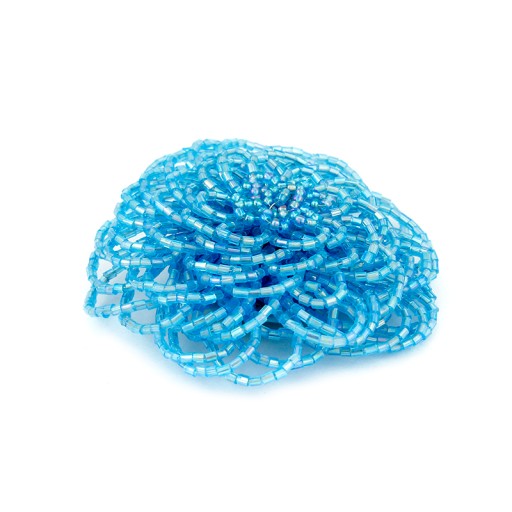 Piękna broszka w kształcie kwiatu wykonana ręcznie z koralików nawleczonych na druciki. Sposób wykonania daje możliwość plastycznego modelowania płatków broszki