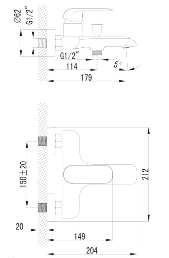 OMNIRES SACRAMENTO НАСТЕННЫЙ СМЕСИТЕЛЬ ДЛЯ ВАННЫ, ЧЕРНЫЙ