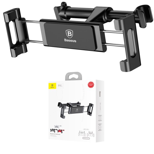 Uniwersalny uchwyt samochodowy na zagłówek firmy BASEUS pasuje do większości modeli telefonów oraz tabletów z ekranem o przekątnej od 4,7" do 12,9". Uchwyt montowany jest do zagłówka przy pomocy specjalnych siłowników. Wysokiej jakości komponenty sprawiają, że bez obaw można zamontować w uchwycie tablet nawet do 12,9" wielkości. Posiada on obrotowe ramię z głowicą 360 stopni co zapewnia wygodę użytkowania.