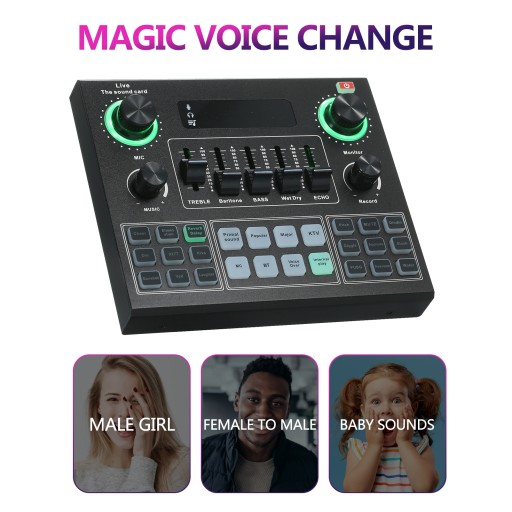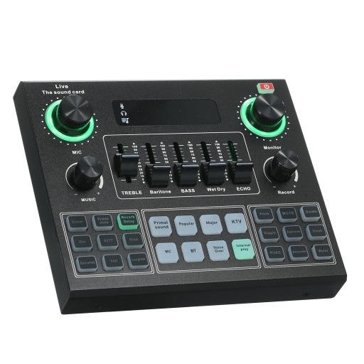 Zewnętrzna karta dźwiękowa na żywo to zbiór nagrań, karaoke, na żywo i współpracujących z komputerami oraz odtwarzania dźwięku i innych funkcji. Zawiera 12 efektów na żywo, 12 efektów muzyki elektronicznej, 14 efektów dźwiękowych podgrzewania wstępnego, obsługuje eliminację dźwięku pochodzenia, głos męski, głos żeński, głos dziecka i różne głosy.