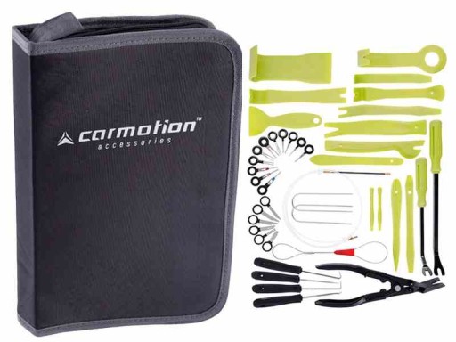 Zestaw zawiera uniwersalne wyjmaki pozwalające sprawnie zdemontować radia, ekrany, nawigacje itp. bez uszkadzania tapicerki.