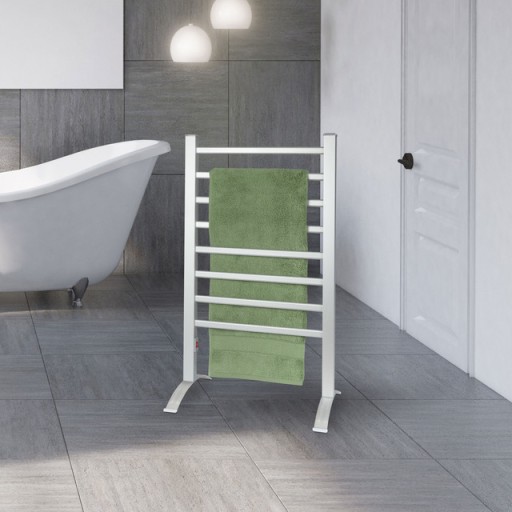 - Elektryczny podgrzewacz do ręczników zapewniający oszczędność miejsca lub wygodny montaż na ścianie