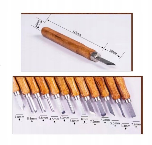 12 szt. Zestaw noży do rzeźbienia w drewnie diy